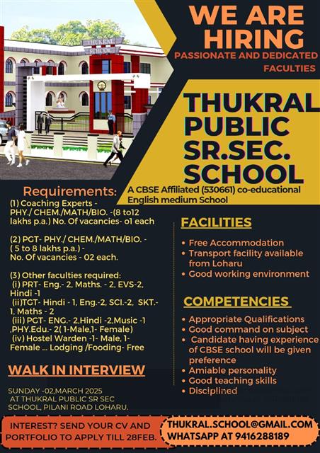 Competent personalities for our institution.... Interested candidates - visit to school on any working day